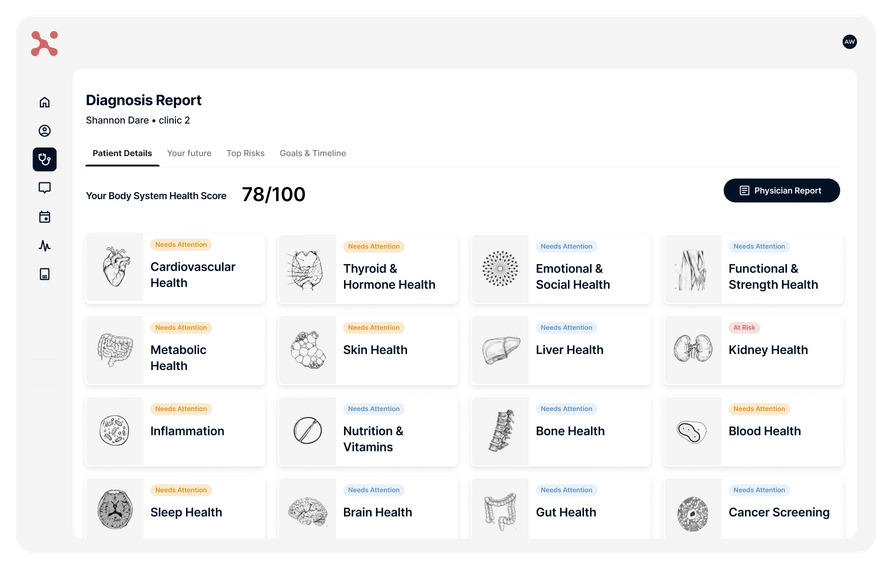 Get automatically-generated clinical insights from comprehensive assessments, enabling targeted interventions that address root causes and optimize health span across every dimension of patient health.
